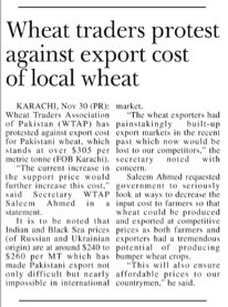 Saleem further stated that WTAP would welcome any statistics or names of Vessels etc. for export buying. He elaborated that WTAP in fact has been requesting for incentives so that they are able to export wheat for the last several years, Pakistan has lost its glory which was gained when we exported over 2million tons, 4 years back in one year. Small negligible tonnages hardly constitute wheat exports, he asserted.